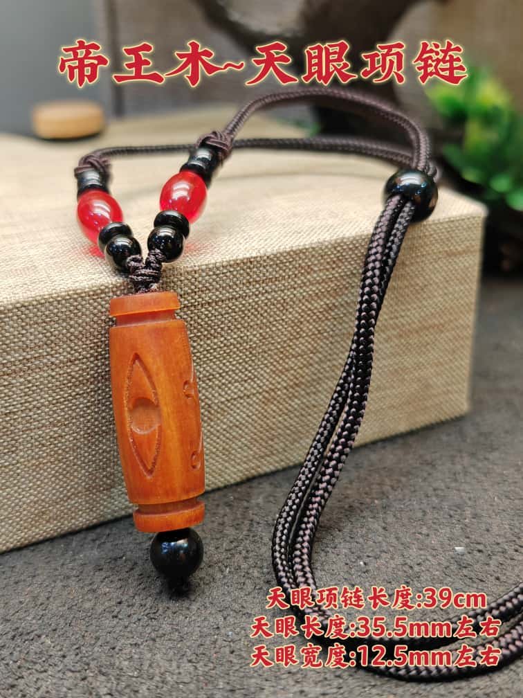 帝王木,又称“金丝楠木”,历来为皇家御用木材,因其纹理华丽、质地坚韧、气韵沉稳而得名“帝王”。本款念珠精选上等帝王木原材,经手工打磨抛光而成,项链长度39cm,天眼长度约35.5mm,天眼宽度约12.5mm,寓意“除百八烦恼,得圆满智慧”,是修行者、禅修者与风水爱好者的理想随身灵物。